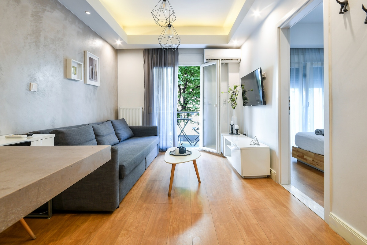 Apartmán v centru elegantní Soluně s balkonem/pračkou
