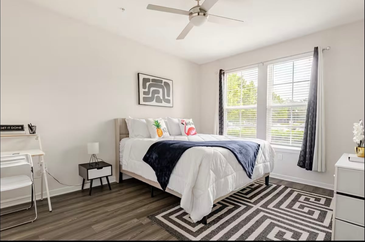 This Courtyard Villa is just 0.5 miles to the center of Spanish Springs Square. Spanish Springs Town Square poznáš podle jedinečné legendární historie, která se odráží ve vzhledu obchodů i fontán na náměstí. Pěšky dojdi na místo večerní zábavy. Dvě ložnice, jedna koupelna a velká manželská postel v hlavní ložnici. Manželská postel v ložnici pro hosty. Rozkládací pohovka v obývacím pokoji. Uzavřený dvorek. 75palcová televize. Kompletní s ložním prádlem, pračkou/sušičkou, kuchyňským vybavením a wifi.