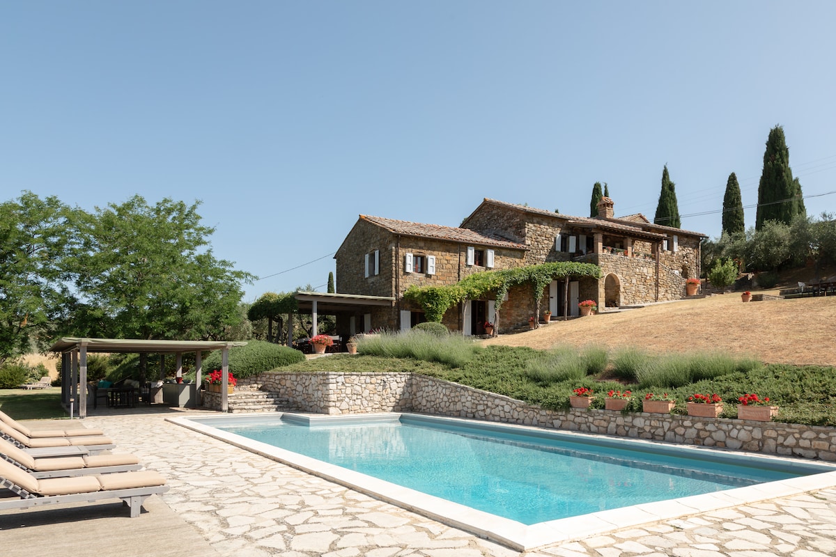 Nell’affascinante campagna Toscana,tra ulivi e vigneti una villa in pietra,in posizione strategica per cogliere i segreti di Toscana e Umbria aria condizionata e piscina con area wellness per il vostro relax e confort Villa Senaia è una grande casa con travi in legno, in una splendida posizione in collina con vista idilliaca che affaccia su uno dei luoghi preferiti della campagna toscana, un ambiente attraente per mangiare all'aperto, bevendo vino toscano e ascoltando i grilli e le cicale