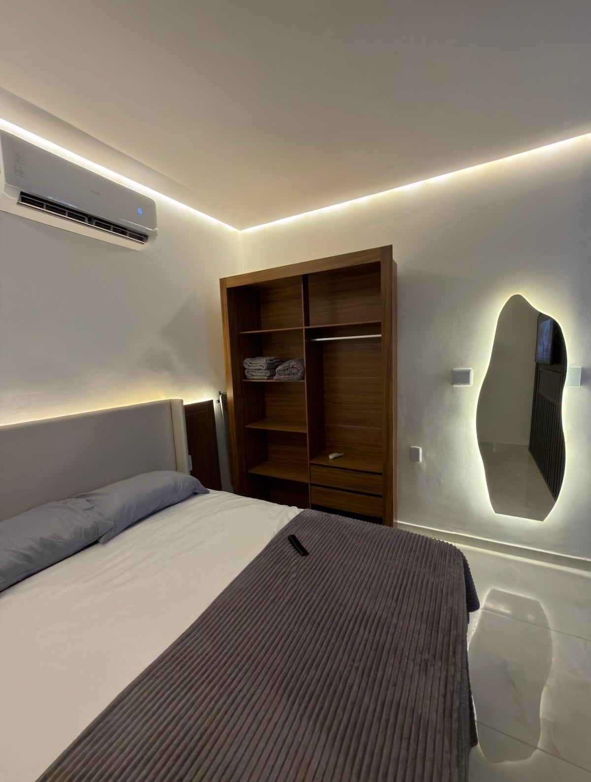 STUDIO S VELKOLEPOU STŘEŠNÍ TERASOU Navrženo tak, aby nabízelo praktický a útulný pobyt pro náročné hosty. - Prémiová manželská postel a ložní prádlo. - 58” TV a kabelové kanály s filmy a Premiere, takže nezmeškáš zápasy svého týmu. – Kuchyně s kávovarem na kapsle, sporákem, mikrovlnnou troubou, duplexní chladničkou, sendvičovačem, mixérem, čističkou studené vody, fritézou; - Moderní koupelna s osvěžující horkou sprchou, fén. - Balkon se stolem a pohodlnými židlemi.