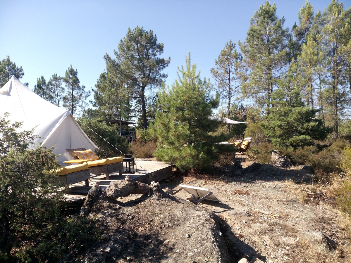MICA, stan vybavený veškerým komfortem, 12 m², čistá bavlna, řeka 5 minut pěšky. Místo mimo čas. Na stejném místě LA COLLINE VAGABONDE: 1 další stan, chata na pilotách, 1 samostatný dům. Stan je umístěn na úbočí kopce mezi borovicemi a kaštany. Krásná řeka je vzdálena 5 minut pěšky. Žijeme zde jednoduše a v souladu s přírodou, máme také rádi pohodlí a čistotu. Společná vybavená kuchyně, tekoucí a teplá voda Koupelna a suché WC sdílené maximálně 2 páry.