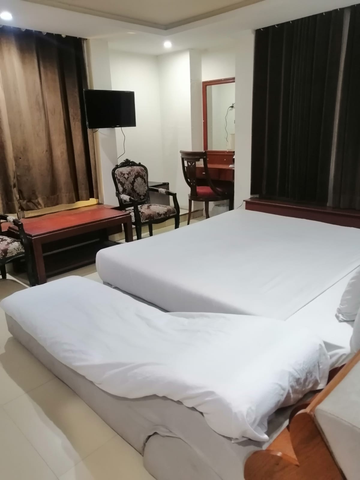 Please note that, as per Pakistan’s regulations, unmarried local couples are not permitted. The Twin Room at Oban Hotel offers a cozy 16 sqm space, perfect for two guests. It features two comfortable twin beds, high-speed Wi-Fi, air conditioning, a minibar, and a work desk. Guests can also enjoy 24/7 room service, laundry facilities, and a complimentary breakfast. Located in Gulberg, Lahore, it’s close to popular shopping and dining areas, ensuring a convenient stay.