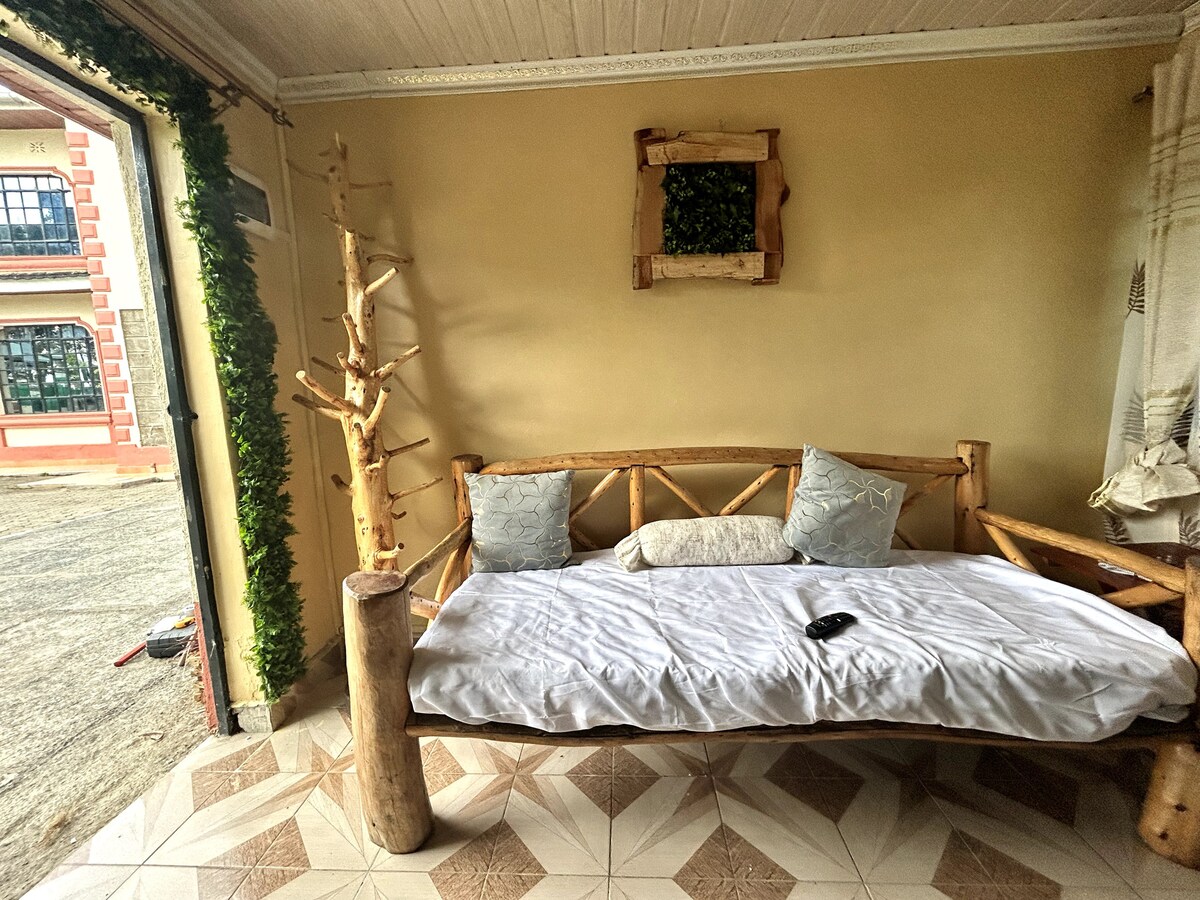 🌿 Soukromé útočiště na rovníku s výhledem na horu Mount Kenya Vítejte v klidném soukromém penzionu s 1 ložnicí, který se nachází přímo na rovníku a nabízí dokonalou rovnováhu mezi pohodlím a klidem. I když je ubytování blízko všeho, je klidné, útulné a pokojné, ideální pro odpočinek a obnovu. Dům pro hosty pohodlně ubytuje až 3 hosty a nabízí útulnou ložnici, rozkládací pohovku, rychlé Wi-Fi, horkou sprchu a plně vybavenou kuchyň, kde si snadno připravíš jídlo. Odpočiň si uvnitř