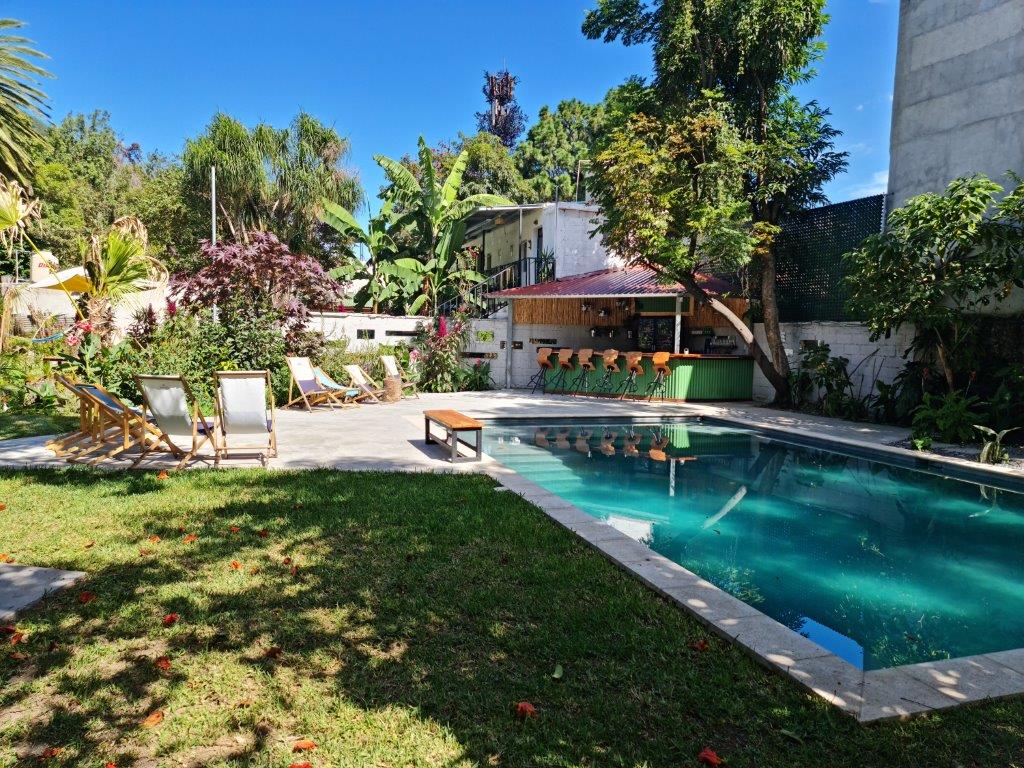 Jeden z 8 pohodlných pokojů se nachází v centru Panajachel, 5 minut chůze od ulice Santander. Obklopen krásnými zahradami, přístup k bazénu sousedícím s pokoji, který se také může pochlubit živým barem u bazénu, s hudbou, který je během dne otevřen pro veřejnost. Na místě máme pizzerii a lahodné dezerty! Hotel a bazén jsou vyhrazeny pro dospělé (+18 let). Bez výjimek.