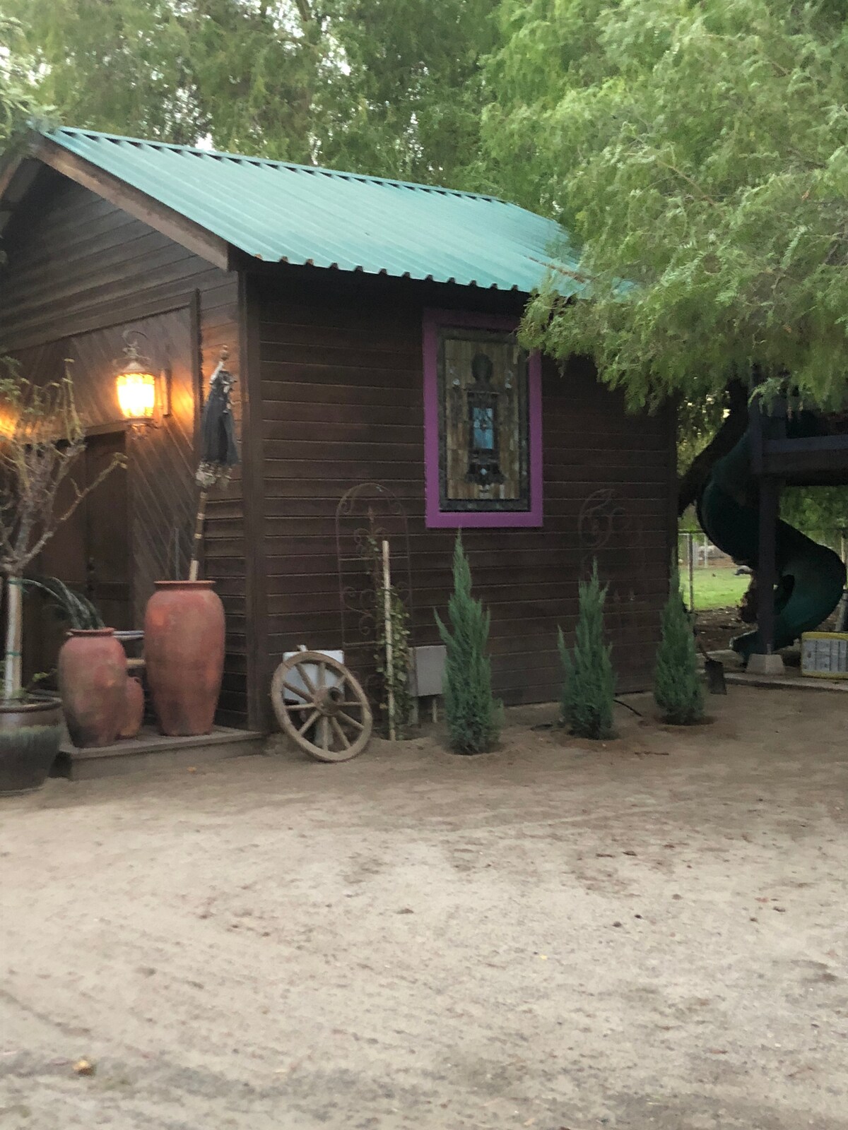 Namaste Farms is a working wool sheep farm located in the heart of Temecula's wine country. The Hay Barn is a Cottage Inn style studio transformed into an upscale private cottage with high ceilings and an amazing vintage stained glass window. Not only are you steps from sheep, geese and free range peafowl, you're minutes to wineries, Galway Downs, California Ranch Company, and Temecula city limits. Need more than one separate Cottage Inn studio? Look at Main Cottage and others. 501c3