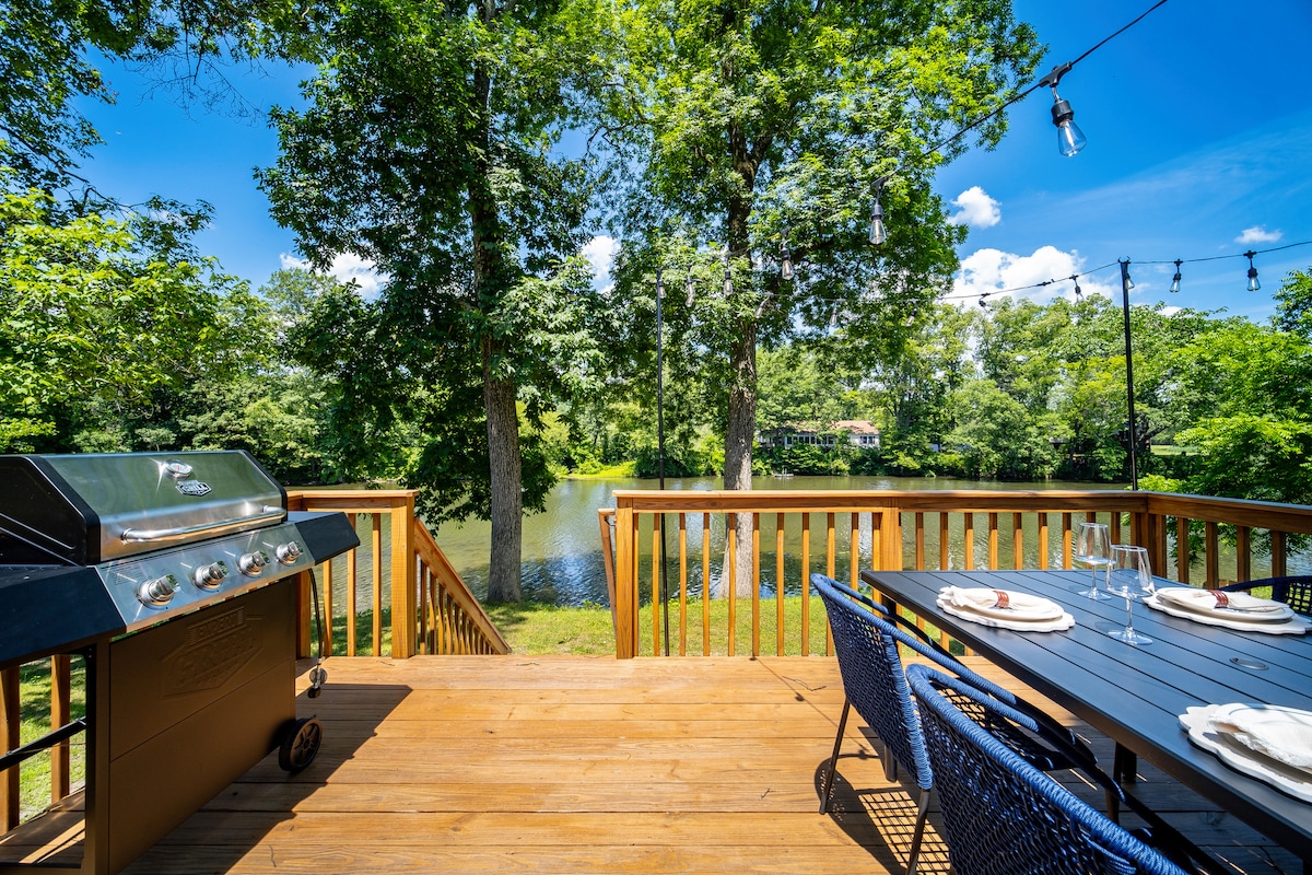 Jedinečný nový domov postavený na zakázku účelově postavený pro úkoly Airbnb. Tento dům nabízí osobitý design s velkou podkrovní ložnicí a plně dlážděnou koupelnou. Podkroví má výhled na obývací pokoj v přízemí, který má otevřený obývací pokoj, jídelnu a kuchyň. Druhá ložnice a koupelna se nacházejí v prvním patře. Žula, břidlice a mýdlo zdůrazňují pracovní desky, toaletní potřeby a podlahy. V celém domě najdeš také spoustu přírodních borovic, hickory a místního cedru.