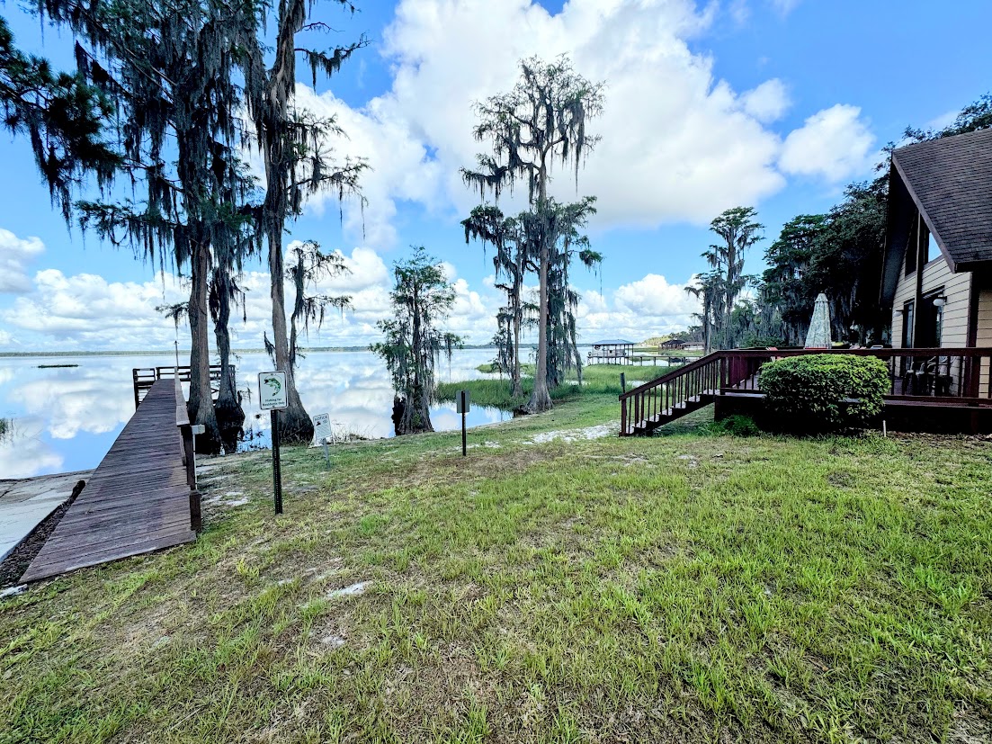 Beautiful lake front home on Lake Louisa. The home sits under towering Cypress trees and is 15 feet from the waters edge. Enjoy breathtaking views of Lake Louisa in the very large great room. Enjoy a game of pool on the pool table, watch cable tv, or walk out onto our private shaded dock where you can fish, swim, enjoy the views, read, play a game of Bimini ring toss, or just relax and unwind. For the safety our guests we allow 2 days between to allow cleaning and disinfecting of the house