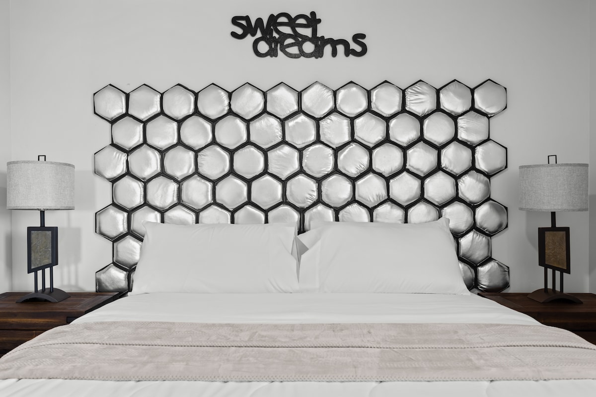 * Casita připojená k novému domovu – bez schodů * Soukromá terasa * Manželská postel pro 2 dospělé, lampičky u postele s možností nabíjení a zásuvkami, velkolepé zrcadlo a velká komoda * Pohovka, trojitá matrace z paměťové pěny, dětská postýlka a nafukovací matrace pro až 2 další dospělé v obývacím pokoji * 100 MBS Wi-Fi, Smart TV * Keurig s kapslemi: bez kofeinu, běžná, čaj, kakao * Malá lednice/mraznička, mikrovlnná trouba, elektrická konvice * Luxusní sprchová tyč, fén * Dvojitá skříň, žehlička a žehlicí prkno