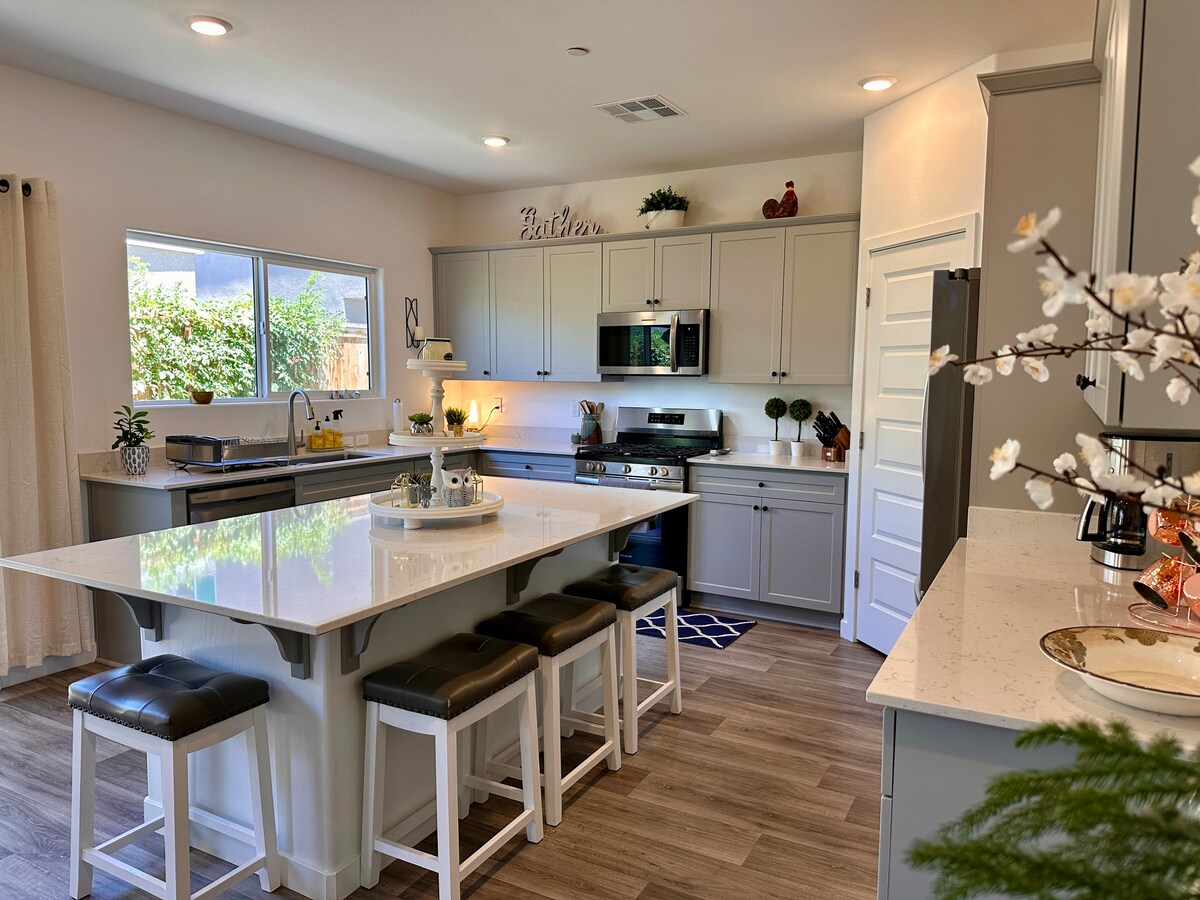 Užijte si pobyt v našem nově vylepšeném a zrekonstruovaném domě, který se nachází v klidné čtvrti poblíž centra Bakersfieldu. V centru města je spousta zábavných aktivit pro lidi všech věkových kategorií. Najdete zde různé restaurace, Muzeum umění v Bakersfieldu, hotel Padre, nákupní centra a arénu Mechanics Bank. Užijte si rodinný čas na řece Kern, která se nachází pouhých 10 minut odtud, a 30 minut od jezera Isabella.
