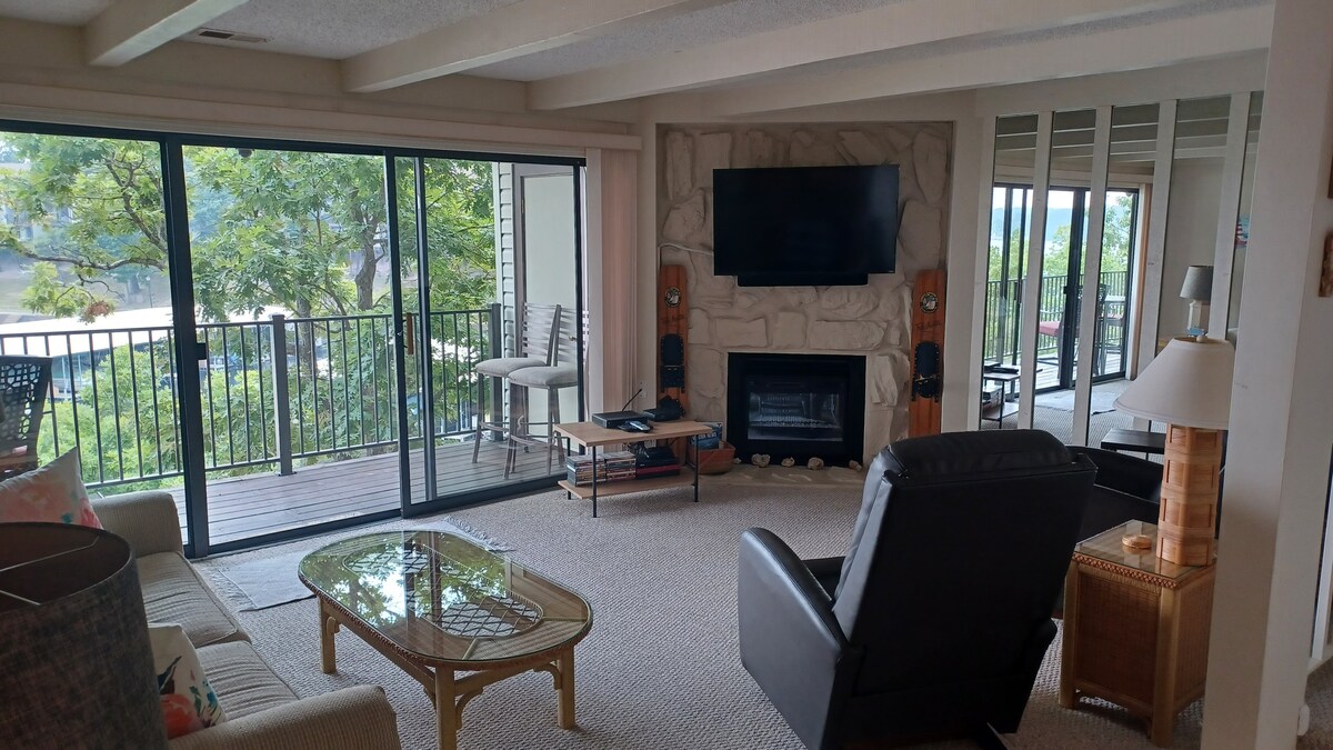 Tento nádherný apartmán u jezera, který se nachází v 17mm v srdci Osage Beach, nabízí pohodlí a komfort díky svým vkusným aktualizacím a nádhernému výhledu na jezero. Budeš mít sezónní přístup k 1 vyhřívanému bazénu, který se otevírá 1. května, a 2 bazénům s výhledem na jezero, které se otevírají 15. května. Můžete si také užít tenisový/pickleballový/basketbalový kurt otevřený po celý rok. Díky výhodné poloze v blízkosti vinařství, restaurací, aktivit a mnoha dalších míst je to příjemné a relaxační místo u jezera pro vás i vaši rodinu.