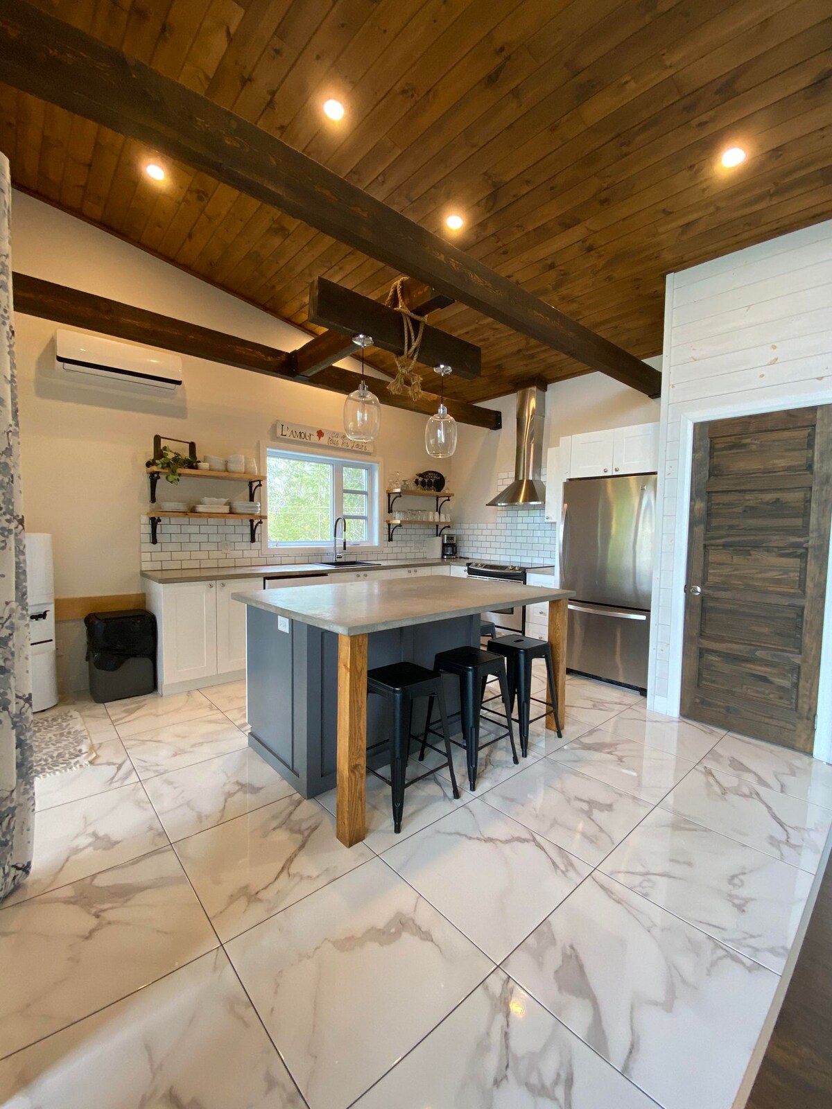 Krásná rustikální chata s otevřeným prostorem v blízkosti Lac Saint-Jean. Ideální místo pro rodinnou dovolenou! Pohodlně se zde ubytují 4 osoby, a až 5, pokud využijete rozkládací pohovku v obývacím pokoji. Obě ložnice jsou OTEVŘENÉ. Stěny jsou příčky a dveře jsou závěsy. Máte přístup k soukromému pozemku a nástěnné tepelné čerpadlo pro pohodlí! Pro milovníky pláže je kemp Colonie Notre-Dame dostupný pouhých 8 minut chůze. Pláž je nádherná!