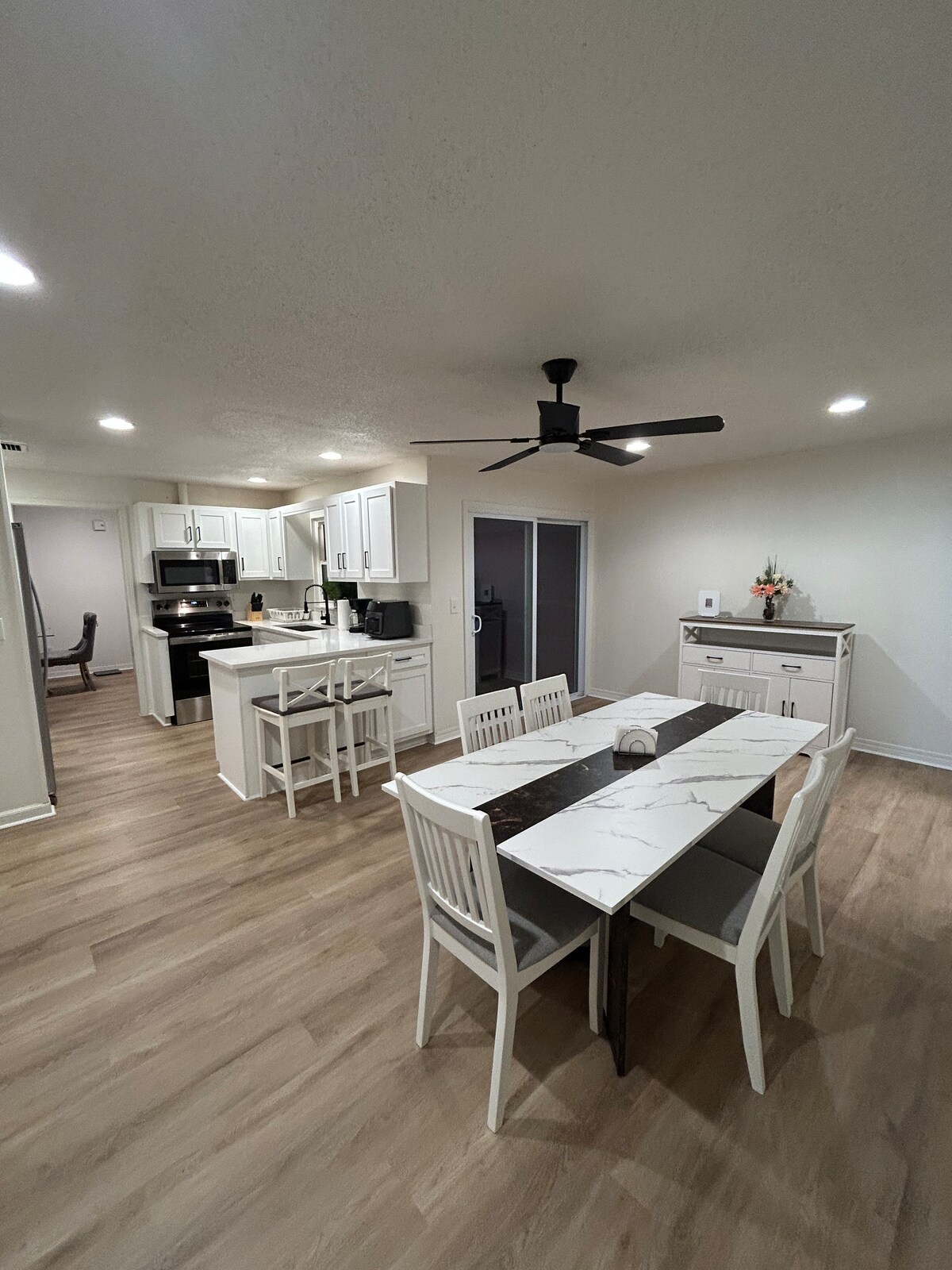 Odpočiň si a odpočiň si v tomto klidném, stylovém prostoru. Užij si soukromí této nedávno zrekonstruované jednotky, která zahrnuje manželskou postel a malý obývací pokoj s rozkládací pohovkou, takže se tu pohodlně ubytují až tři osoby. K dispozici je také 50palcová chytrá televize, kuchyňský kout, koupelna/sprcha, skříň a zámek s tlačítkovým ovladačem pro snadný přístup dovnitř a ven. Upozorňujeme, že v zájmu zvýšení bezpečnosti máme v přední části ubytování venkovní bezpečnostní kameru. Pohodlně se nachází 1 míli od dálnice 295.