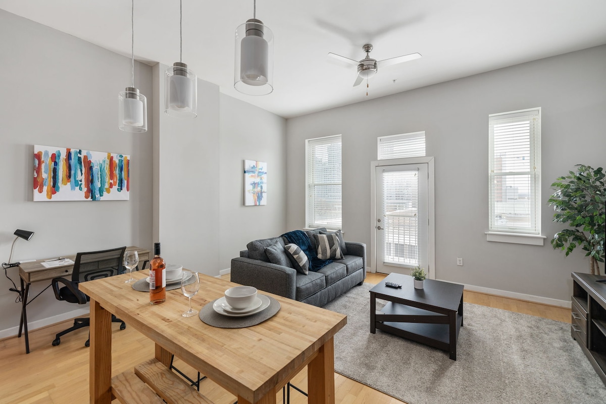 Vítej ve svém luxusním domově v srdci čtvrti Scott's Addition. Soukromé koupelny v každé ložnici, plně vybavená kuchyň, prádelna v jednotce, rychlá Wi-Fi a chytré televizory v každém pokoji, plus přístup k bazénu, posilovně a zabezpečenému parkování. Pěšky dojdeš do pivovarů, restaurací a obchodů – skvělé pro rodiny, skupiny nebo služebně cestující. Když nehostíme, je to náš osobní byt, takže si můžeš všimnout úhledně uloženého oblečení, věcí ve spíži nebo základních toaletních potřeb. Prostor je čistý, uspořádaný a plně připravený pro hosty.