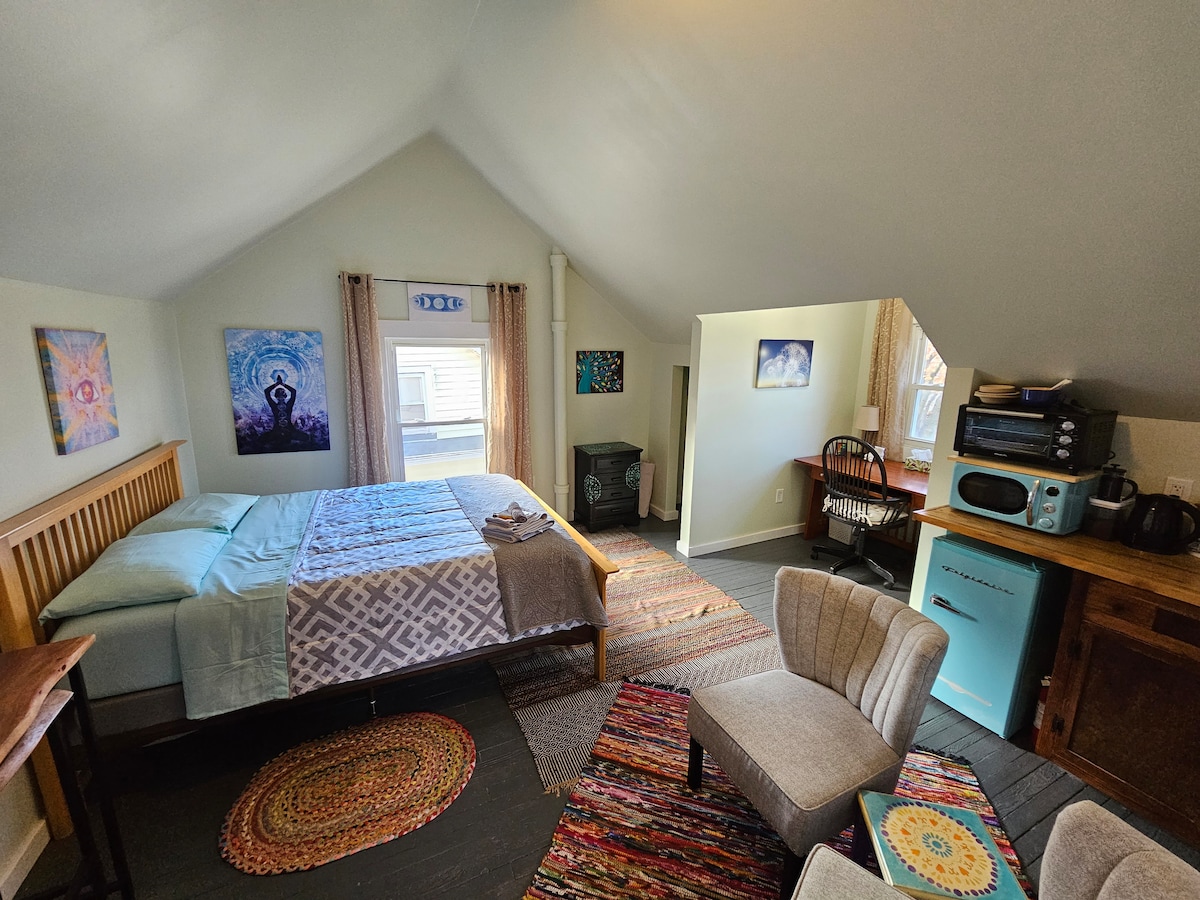 Odpočiňte si na tomto romantickém pobytu v krásných kopcích Bristol Hills, jen pár minut od lyžařského střediska Bristol Ski Resort, Canandaigua a Honeoye Lakes. Tato jedinečná chalupa s 1 ložnicí a 1 koupelnou je jedním z našich dvou domovů na pozemku podél klidně tekoucího potoka Mill Creek. Objevte přírodní krásy z velké terasy a vířivky. Uvnitř si užijte teplo plynového krbu, bezplatné wifi a smartTV. Plně vybavená kuchyně a koupelna jsou dobře zásobeny vybavením, které zajistí pohodlný pobyt.