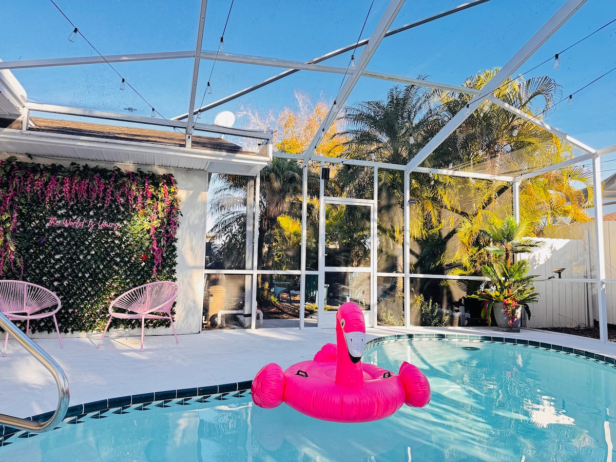 Tvá rodina bude mít blízko ke všemu, když se ubytuješ v tomto centrálně umístěném místě. Nachází se v prémiové oblasti. Jen pár minut od obchodů, restaurací a vnitřní/ venkovní zábavy. Domov se nachází v sousedství s cyklistickými a běžeckými stezkami, basketbalovými hřišti a dalšími věcmi. Domov zahrnuje jednu manželskou postel King, jednu manželskou postel Queen, jednu plnou, dvě oddělené postele a na požádání. POUZE 15 minut od Tampy a 30 minut od pláží!