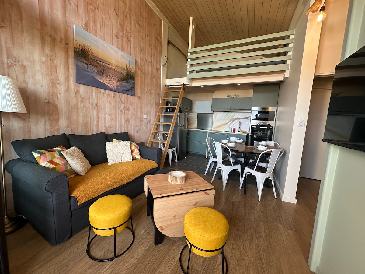 Moliets… Stříbrné pobřeží, šepot větru v borovicích, vůně oceánu, jehož vlny se třpytí pod sluncem. Nachází se 44 km od Biarritz , 125 km od Bordeaux a rezervace kliknutí od tvého ubytování. At 2, 3, 4, 5, or 6 people come and relax in this apartment located between land and sea, at the top of the pine trees of the golf course ..... Zde budeš spát v OPRAVDU pohodlných postelích. K dispozici máš mnoho aktivit, takže fotoalbum tvé dovolené zůstane nezapomenutelné.