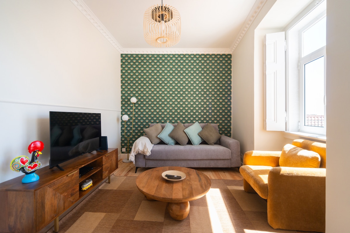 - Apart with unique personality, designed for QUIET PEOPLE, who want to enjoy Lisbon's light, in a Good Energy, cozy setting 💛 - Located in a top district (home to most embassies) - Special Nature spot in the backyard, with open view 💚 - Two fully equiped workstations + Fast internet speed (<500Mbps) + USB ports in all rooms + USB/Energy cable for the balcony - Powerful AC / Modern heating systems / Exterior heater&blankets - If tired, recover&relax in a professional massage chair 💖
