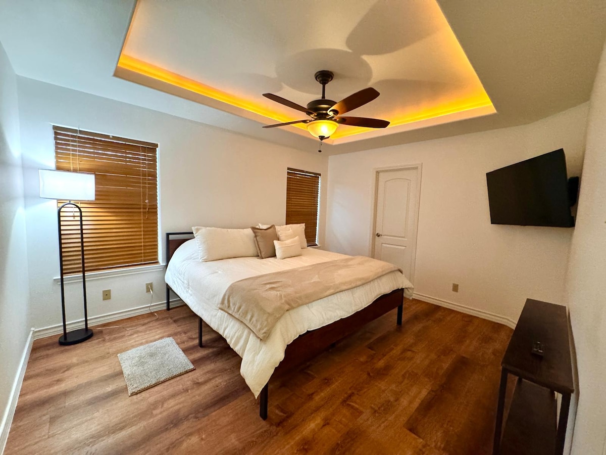 Ubytuj se v Guerrero Getaway – tvé dokonalé základně pro objevování Lareda! Tento moderní apartmán se 2 ložnicemi a 1 koupelnou nabízí pohodlí a komfort v klidné čtvrti. Užij si plně vybavenou kuchyň, útulný obytný prostor a další vybavení pro rodiny, páry nebo služební cesty. Jen pár minut od nákupů, restaurací a místních atrakcí, Guerrero Getaway je ideálním místem pro relaxační pobyt v Laredu.