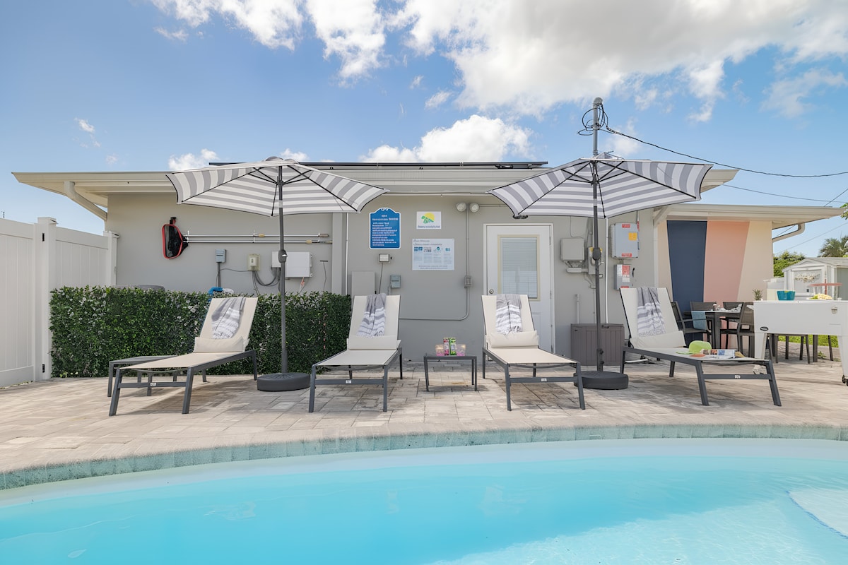 Jedinečná tropická oáza s ložnicí a tiki barem! LGBTQIA + vítejte! Hablo Español. Ráj pro domácí mazlíčky. Tropický Airbnb únik! Náš jedinečný vyhřívaný SOUKROMÝ bazén ve stylu resortu s vodopády a dvojitými slunečními terasami, / v bazénových lehátkách, obklopený bujnou krajinou, je soukromou oázou. 3 ložnice, s velkou 3. ložnicí se 2 manželskými postelemi Při příjezdu je k dispozici pronájem plážového vozidla. Zeptejte se.