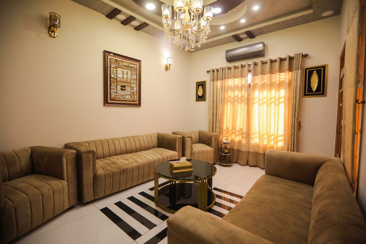 Escape to comfort in this luxurious villa in Bahria Town Karachi. Featuring spacious bedrooms with attached baths, a modern kitchen, stylish living & dining areas, and a private terrace, this home is perfect for families or groups. Located in a secure gated community with 24/7 security, parks, cafes, and supermarkets nearby. Enjoy a peaceful stay with all the amenities you need for short or long visits. Special ramzan 55% off on prices.