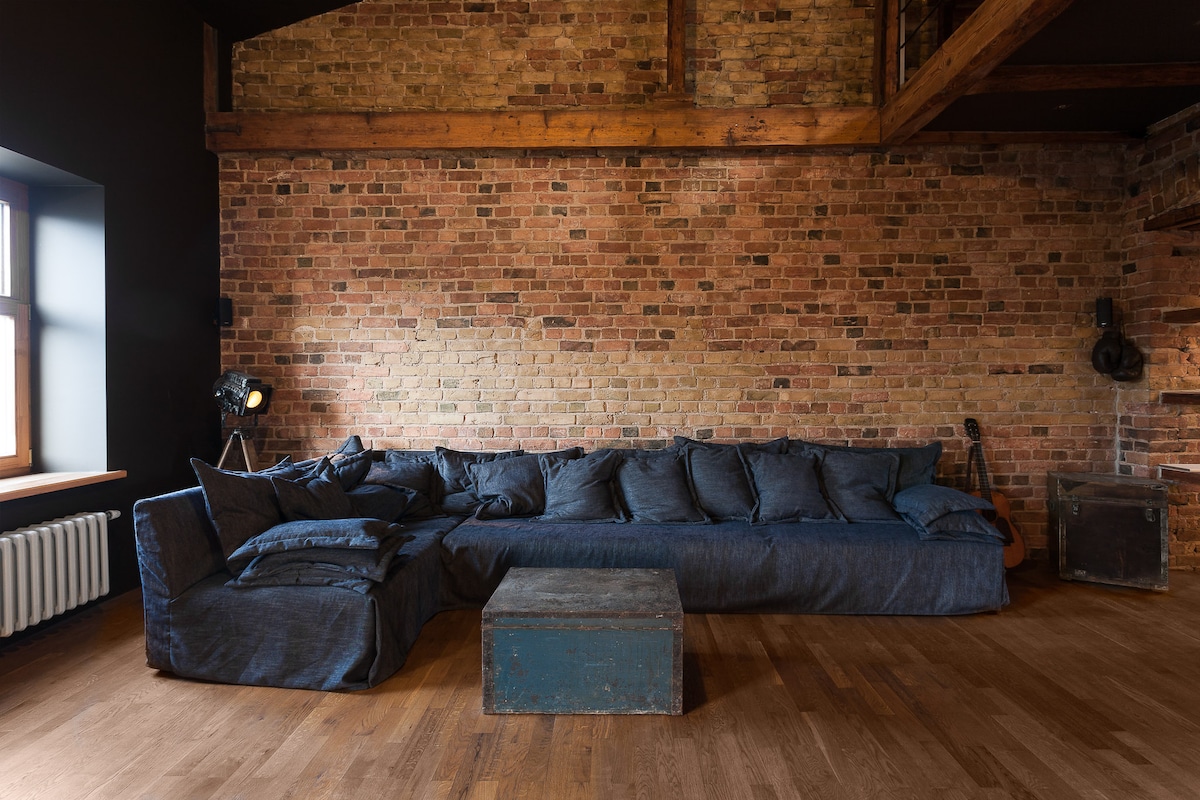 Útulný designový loft v srdci historického centra Liepāji – ideální pro odpočinkový pobyt u moře nebo romantický víkend. Díky hřejivému večernímu světlu, odhaleným cihlovým zdím a klidné, stylové atmosféře je to místo, kde můžeš zpomalit a odpočinout si.