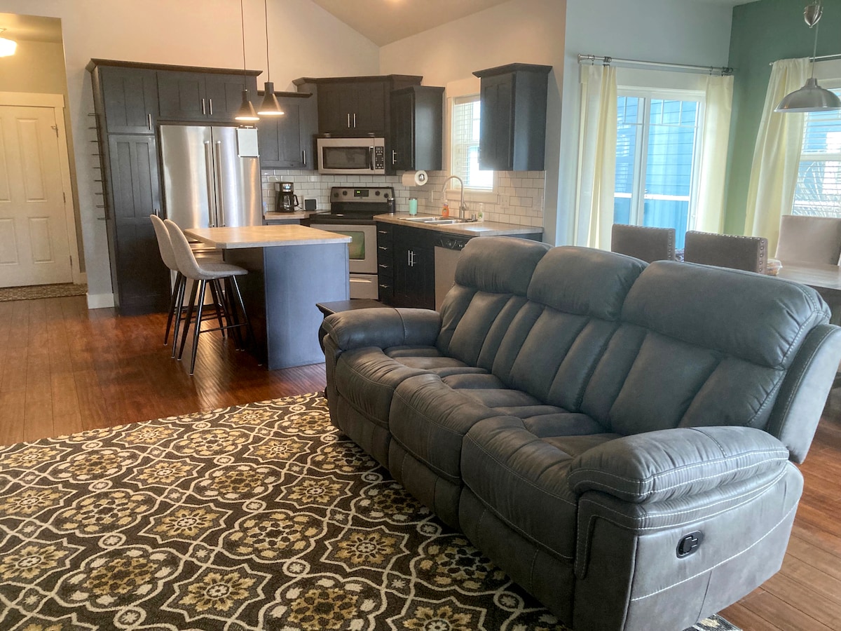 Welcome to our charming, centrally located Tiny Home, just minutes from downtown Billings, both hospitals, and the airport. This modern space features high ceilings, large windows that fill the home with natural light, and a queen-size bed that promises a restful night’s sleep. Enjoy the convenience of a fridge, oven/stove, and a new full-size washer and dryer. With stunning tile work and heated bathroom floors, we’ve created a space where you can truly relax and feel at home.