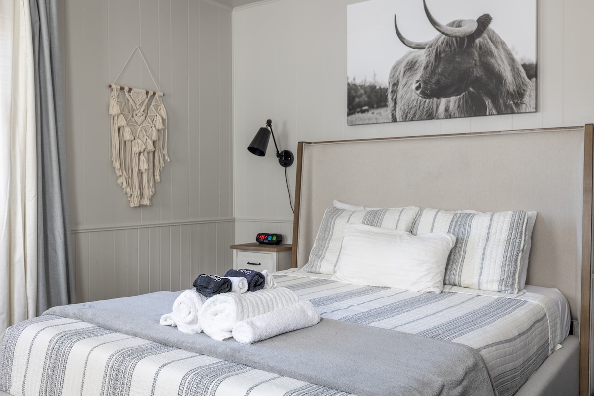 Black Hills Experience nabízí rafinované útočiště na úrovni manažera – ideální pro krátký služební pobyt nebo delší dovolenou s partnerem. Tento prostorný ráj o rozloze 695 čtverečních stop nabízí luxusní manželskou postel velikosti king, tichou centrální klimatizaci s individuálním ovládáním, téměř okamžitou horkou vodu a bleskově rychlé WiFi. Je navržen pro maximální pohodlí a je bezproblémovou kombinací luxusu a pohodlí.
