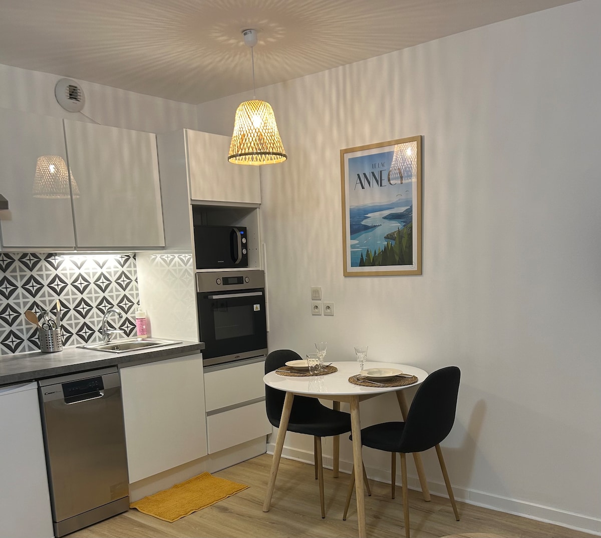 Naše ubytování je blízko autobusové zastávky – podniky, 15 minut od centra Annecy a jezera, 10 minut pěšky od vesnice. Samostatný vchod. Tiché, slunečné. Panoramatický výhled na město a hory. Možný přístup k bazénu. Pohodlná postel, nádobí a výhled. Ubytování vhodné pro páry, jednotlivce a hosty na služební cestě. Kancelářský stůl, WiFi. Soukromé, uzavřené parkoviště. Zahradní nábytek. Přístup k lavici na voskování běžek. Cyklostezky.