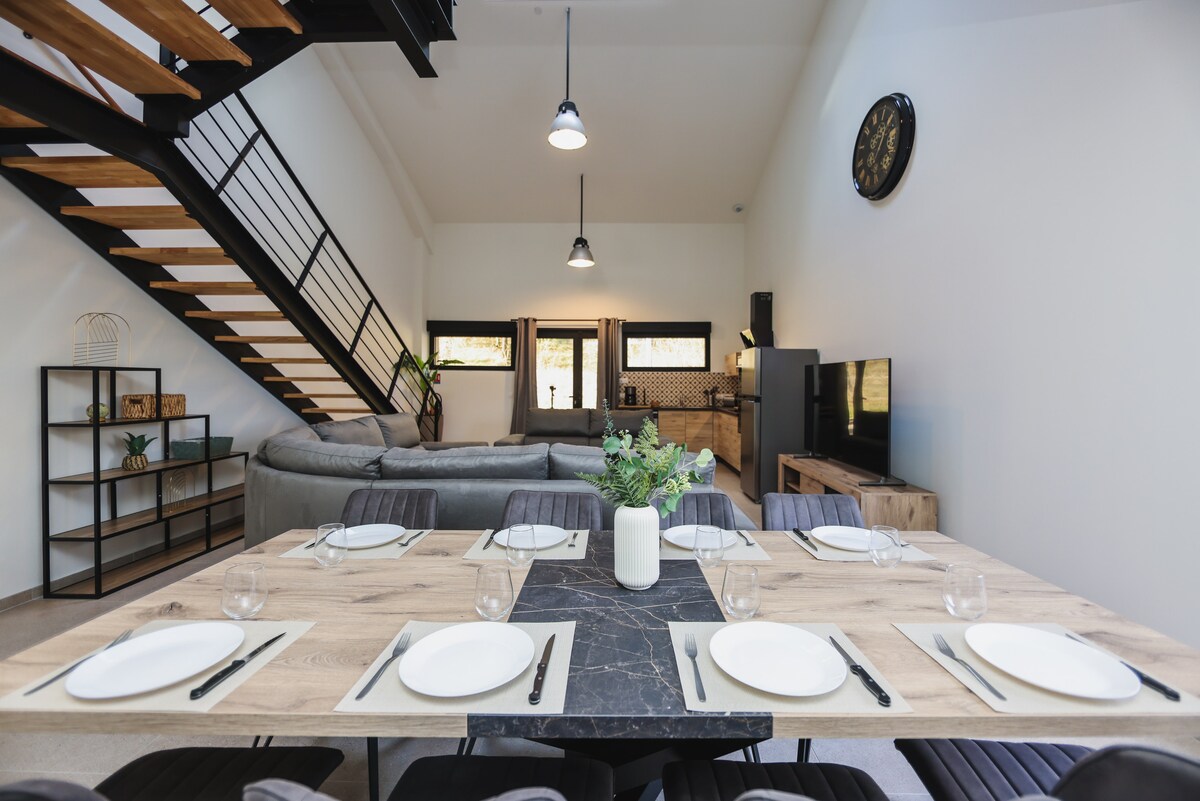 La Longère 1851 vás vítá ve světlém a útulném prostředí, navrženém pro vaše pohodlí. Každý detail byl pečlivě vytvořen tak, aby vytvářel elegantní a uklidňující atmosféru, a vše je zaplaveno přirozeným světlem. Užij si příjemné obytné prostory, rodinný pokoj (s biliardem, stolním fotbalem, šipkami) a „La Source des Sens“ – soukromou wellness zónu s lázní, saunou a sprchou. Elegance, relaxace a volný čas na nezapomenutelný pobyt v naprostém klidu.