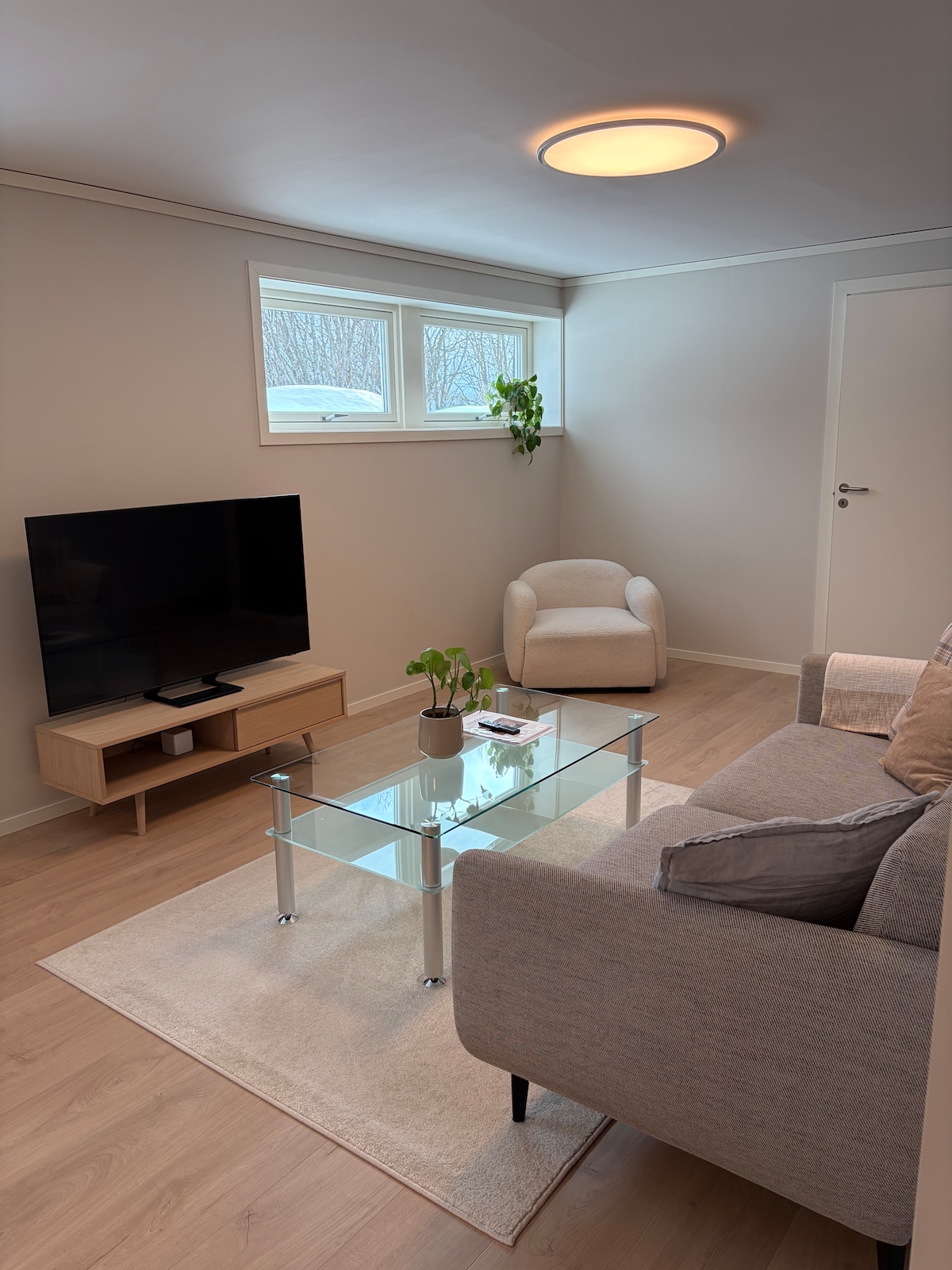 The apartment is located in the amazing Folkeparken, the largest public park and protected area on the island. The park has hiking trails, and cross country skiing in the winter. Telegrafbukta is located within the park, witch is known as a great place to experiance the northern lights. Other usefull amenities closeby include: gym and busstops 200 meters, Tromsø museum 550 m, grocery store 1,2 km and city center is within walking distance. Experiance the nature and urban living in close harmony