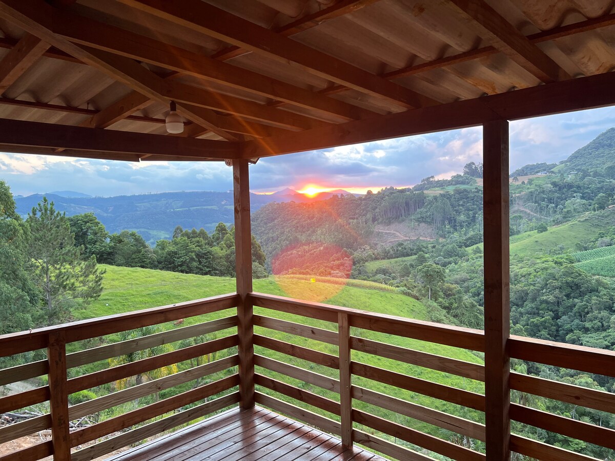 Uma cabana para relaxar e aproveitar o melhor ângulo do sol ☀️ Aqui, você entrará em contato com a natureza, dormindo com o silêncio do interior e acordando com o canto dos pássaros, desfrutando de belas paisagens, contando com um incrível mirante para registrar seus melhores momentos juntos. Caso goste de aventura, dispomos de uma pequena trilha na propriedade com lagos e riacho. *Café da manhã não incluso