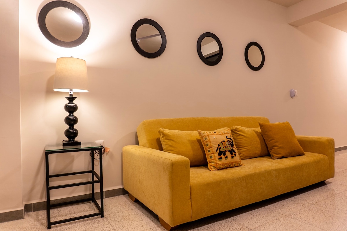 Útulný a moderní apartmán ve zlaté zóně Leónu, uvnitř soukromí s bezpečností, 10 minut od hlavního náměstí, kamenný dům, restaurace, 5 minut od metropolitního parku a 3 minuty od parku Cáramos, s dobrými přístupovými cestami. Byt v přízemí. Má 1 parkovací místo, vybavenou kuchyň a koupelnu, dopravní prostředky v okolí, zelené plochy a basketbalové hřiště. Chytrý stolek s bezdrátovým nabíjením, 42" TV, Netflix, Prime, Disney + a HBO Max.