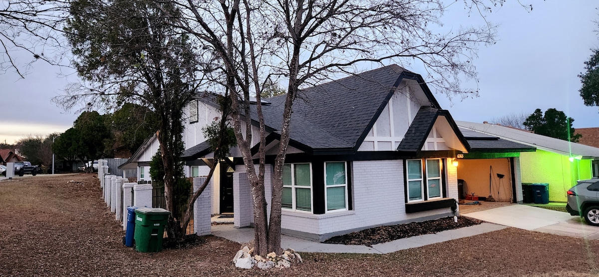 Pozdrav ze SA, Our modern charming home is centrally locally locally in the medical center area of beautiful San Antonio & within 15-20 mins from the SA Riverwalk, Sea World, Fiesta TX, Military Bases, & popular areas. Má 3 ložnice a 2 plně vybavené koupelny. Projdi si podrobné fotky, popis a další užitečné informace. POZNÁMKA: Jsme také vlastníky domu přímo přes ulici a pokud cestujete ve větších skupinách, můžeme ubytovat 8 hostů v každém domě.