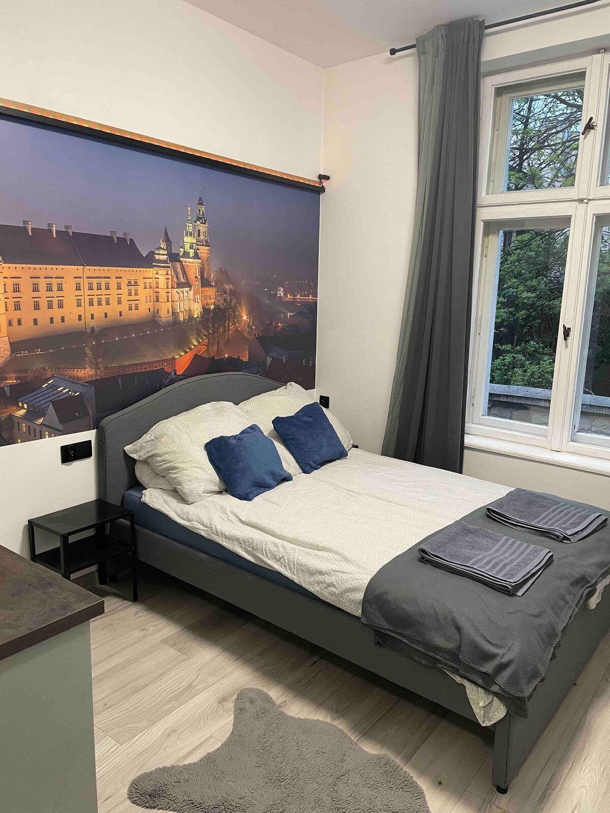 This brand new, cosy & comfortable apartment is located just 5 min walking from center of Kazimierz, old Jewish district full of cafeterias, restaurants and galleries, the cultural Centre of the city. AirCon! Wi-Fi! Huge Terrace! The place is good for couples, solo adventurers, business travellers, and families. It is fully equipped and furnished for your comfortable stay. Despite its central location the apartment is quiet and has a huge terrace where you can rest after day of sightseeing.