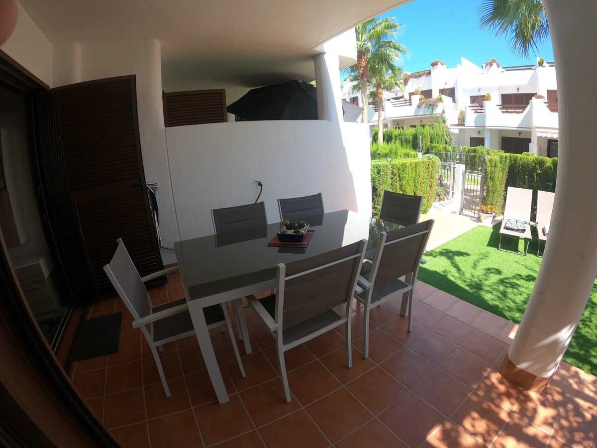 Útulný rodinný apartmán s útulnou zahradou s krásným výhledem na bazén. 2 ložnice s velkými postelemi (180x 200) a 2x (90x200) 2 pěkné koupelny. Každý prostor má klimatizaci. Kuchyně je plně vybavena. Urbanizace je vybavena 3 bazény (včetně krytého bazénu), 2 padelovými a 2 tenisovými kurty. Je to velmi klidné místo, ale v okolí je stále mnoho aktivit, včetně obchodů, barů, plážových klubů, restaurací, aquaparku, moře,.. Zde si můžeš plně užít