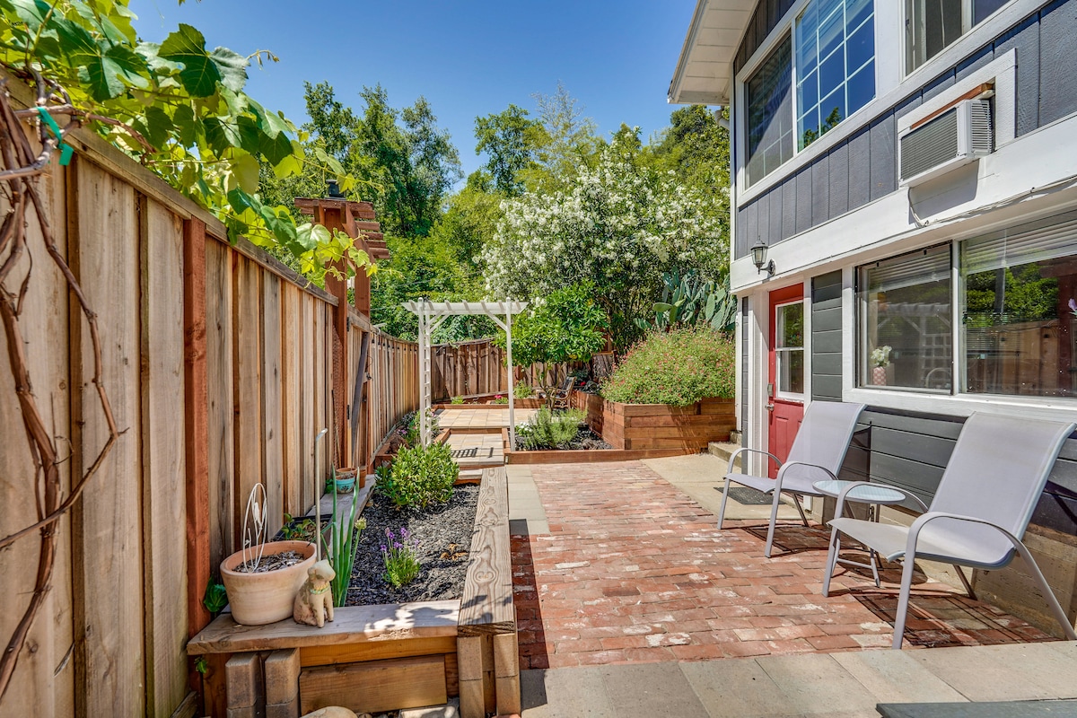Toto sluncem zalitý apartmá má soukromý vchod a přístup na krásnou zahradní terasu s noční atmosférou a krbem. Velké arkýřové okno poskytuje výhled do bujné zahrady s ovocem, květinami a zeleninou přímo venku. Pohodlná postel a krásná čtvrť starého města přispívají k hřejivému, domáckému pocitu. Apartmá je ukryto daleko od nejrušnějších částí města, ideální jako základna uprostřed nejlepších atrakcí NorCal: SF, Carmel, Pebble Beach, Monterey, Santa Cruz a další.