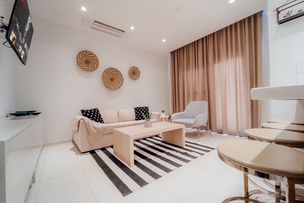 Tento světlý apartmán se nachází v Noordu, jen kousek od Palm Beach, a spojuje moderní vylepšení s ostrovním šarmem. Nedávno kompletně zrekonstruovaný, nabízí příjemný prostor k odpočinku po prozkoumání pláží, restaurací a nočního života Aruby. Ať už jsi tu kvůli dobrodružství nebo čisté relaxaci, tento apartmán tě dostane přesně tam, kde chceš být. ✔ Pohodlná ložnice s manželskou postelí ✔ Open-Concept Living ✔ Plně vybavená kuchyně ✔ Soukromý balkon ✔ Bezplatné Wi-Fi Vybavení ✔ komunity (bazén, gril, parkování)