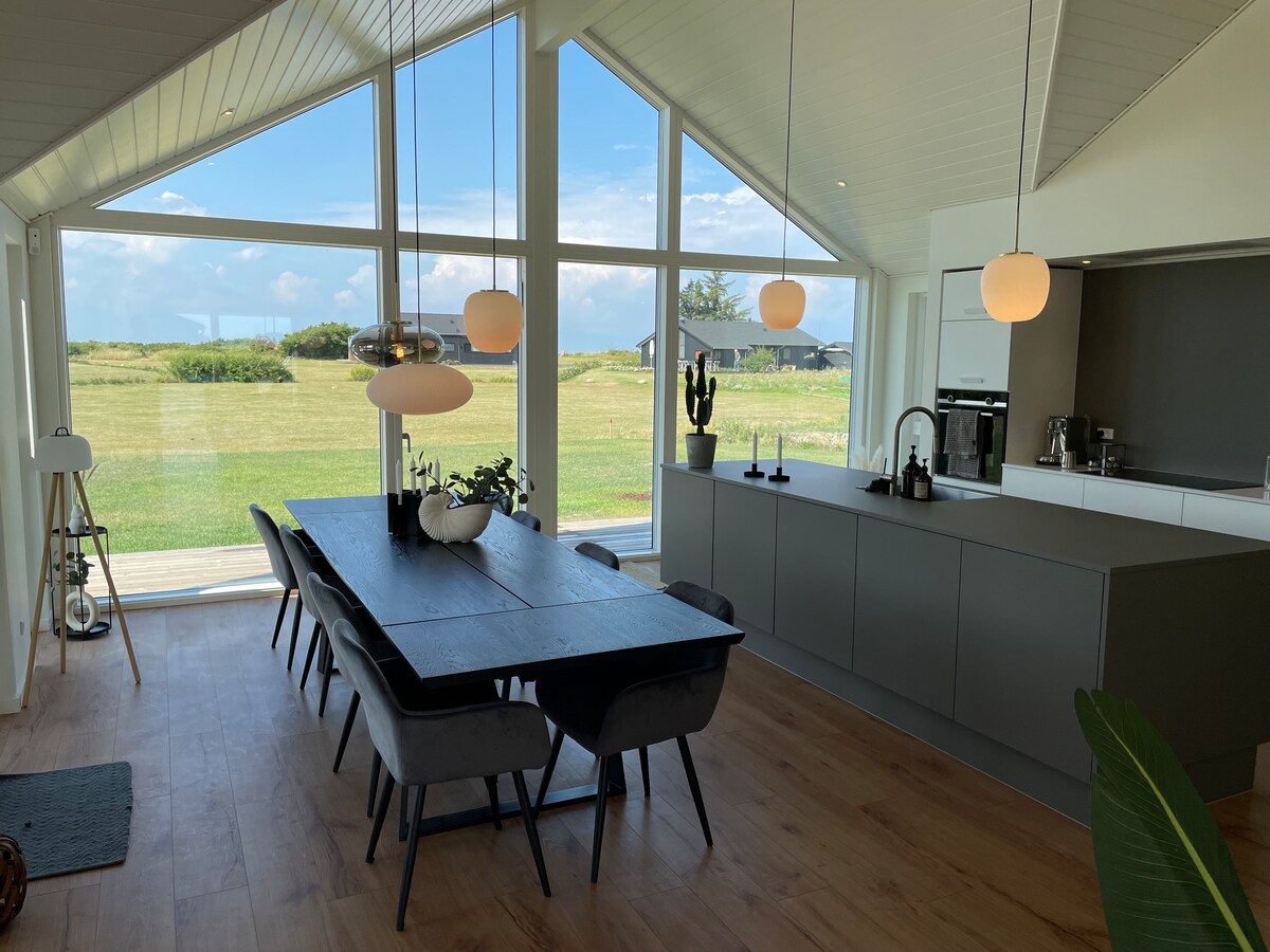 128m2 chalupa v první řadě s 30 metrů na krásnou soukromou a nerušenou pláž. Private behind the house is new wilderness bath and outdoor shower built into the terrace. Dům se nachází na velkém přírodním pozemku s lesem, který je ideální pro hraní a dobrodružství. It is a 15-minute drive to Stege with shops and restaurants and 3 km walking distance to Klintholm port city. Optimální oblast pro rybolov mořských pstruhů. Projíždí turistická trasa „Camønoen“. Dům je moderně zařízený a může se v něm ubytovat až 8 osob.
