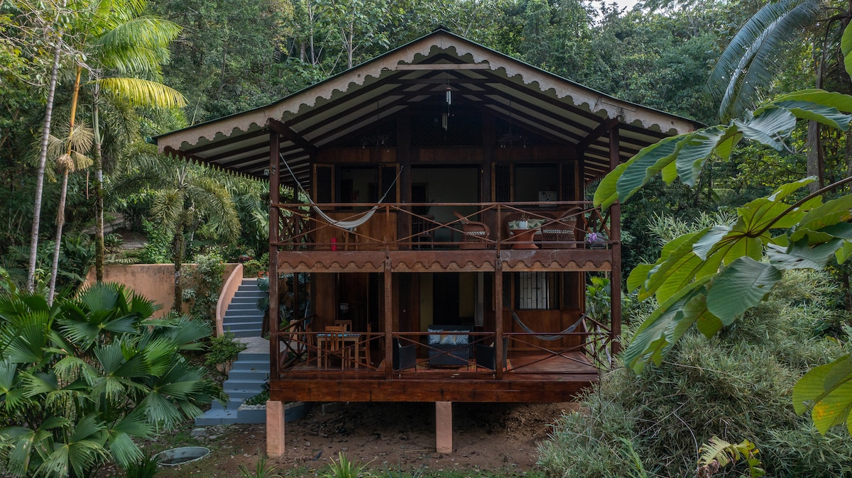 Během tohoto jedinečného a poklidného pobytu si dokonale odpočineš v tropické oáze usazené na horské straně džungle s výhledem na bujný deštný prales! Krásný penzion postavený na míru, usazený na kopci v rámci 365 akrové karibské farmy. Jemné řemeslné dřevo s detailními povrchovými úpravami. Plně zařízená, okouzlující kuchyň plně vybavená pro vaření, obývací pokoj, velké dešťové sprchy, zahrada pro meditaci, velká venkovní terasa a fontána. Odpočiňte si v houpacích sítích a vychutí se do zvuků řeky a divoké přírody.