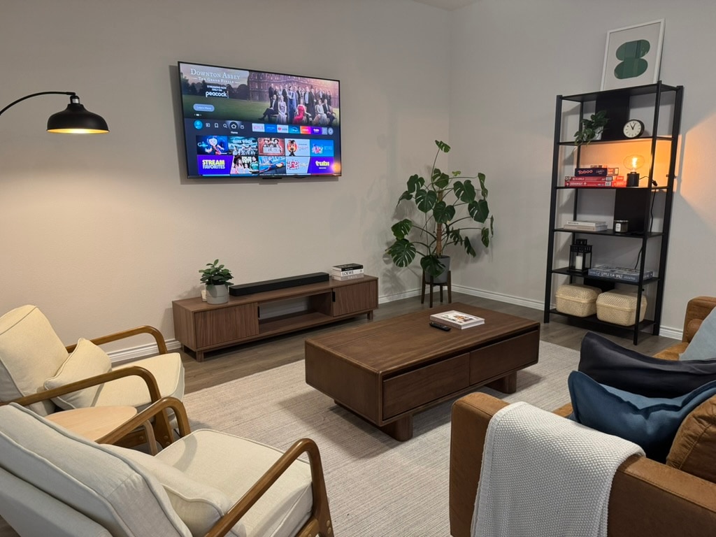 Vítejte v našem luxusním ubytování vhodném pro rodiny! Náš domov má veškeré vybavení, které potřebuješ pro pohodlný a příjemný pobyt se svými blízkými. Sleduj filmy a televizní pořady na obrovské 85palcové obrazovce, relaxuj ve vířivce nebo si zahraj na travnatém dvorku. Máme tu dokonce útulný čtecí koutek pro klidné chvíle. Díky poloze poblíž Legacy West, The Star, RoughRiders Baseball a mnoha nákupních center se nikdy nebudete nudit. Rezervuj si pobyt ještě dnes a začni plánovat dokonalou dovolenou!