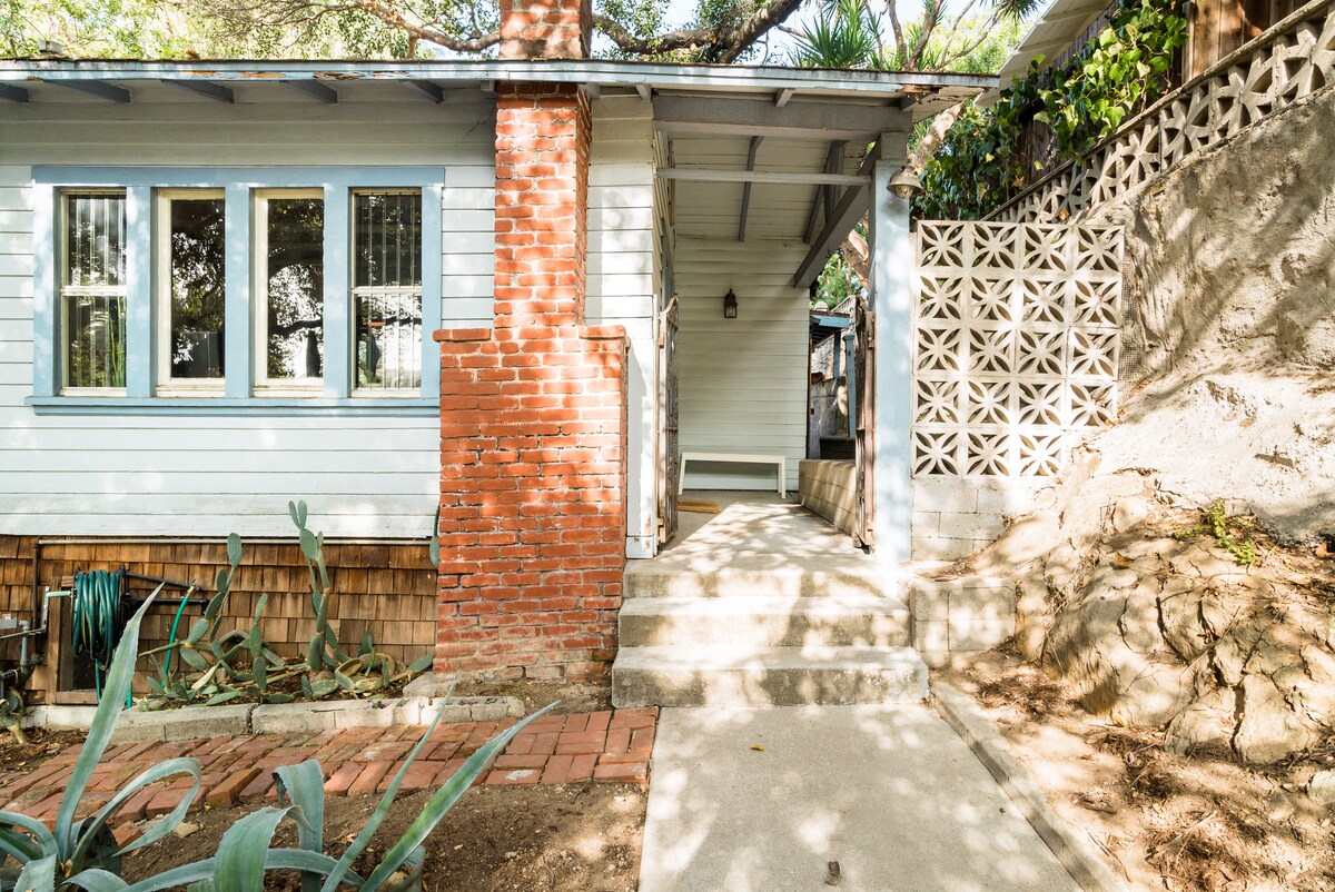 Odpočiň si a relaxuj v této 100 let staré samostatné chatě, která se nachází v kopcích nad jednou z nejzajímavějších čtvrtí Silverlake/Echo Park. Zapal vnitřní nebo venkovní krb a využij dobře vybavenou terasu. Podívejte se na film ve stylovém obývacím pokoji nebo si přečtěte knihu v okouzlujícím interiéru této svatyně, která je jen pár kroků od města. Hned za kopcem, ale 5 minut od všeho a v blízkosti dálnice 5 a 2.