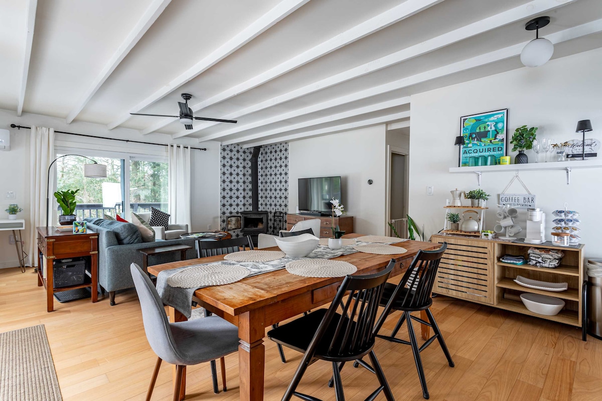 Zenwood Manor: Moderní chalupa s kamny na dřevo a ohništěm
