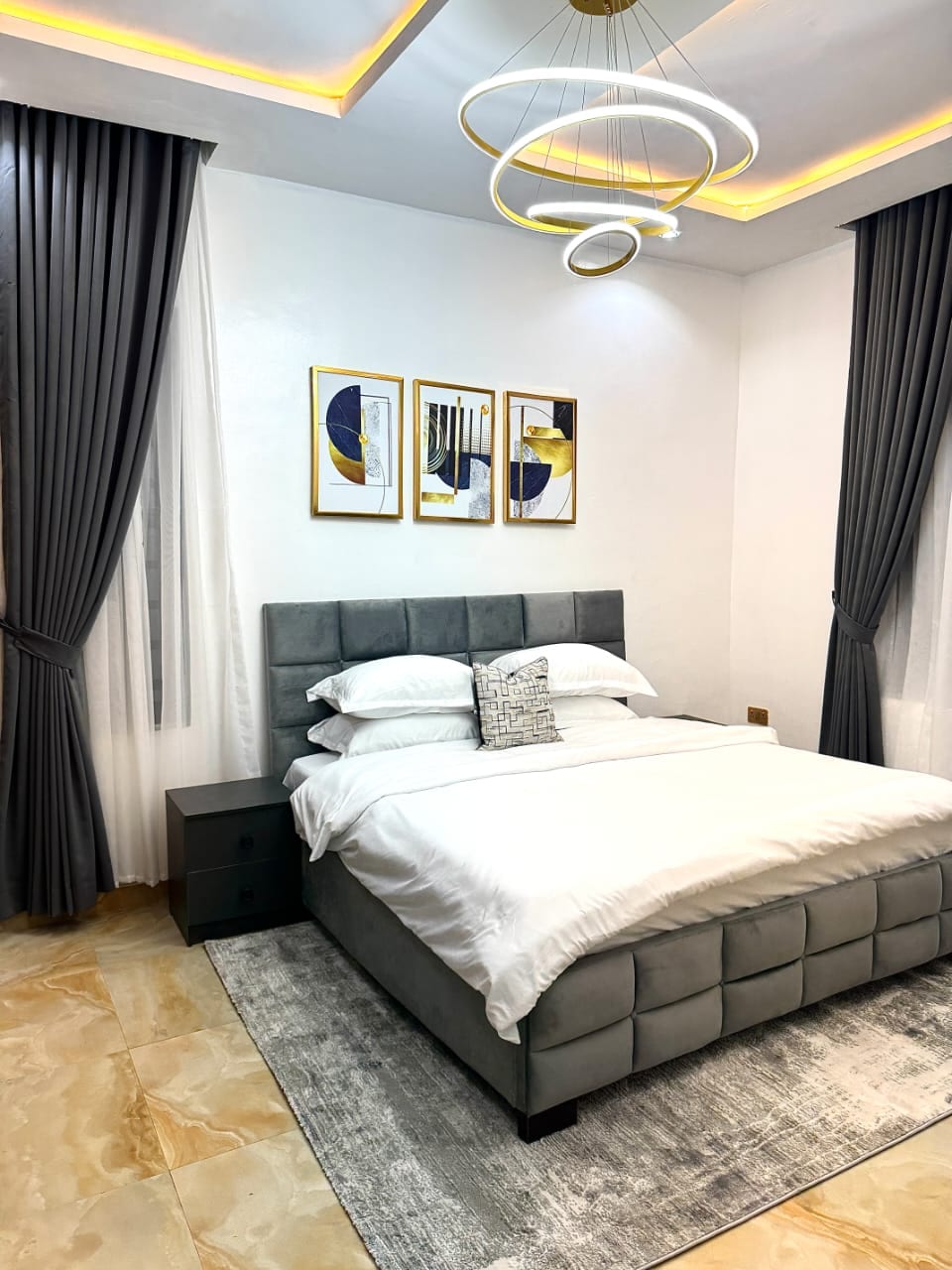 Vítejte v tomto krásně navrženém jednopokojovém bytě, který se nachází na ulici Toyin ikeja, blízko všude. Je plně vybaven moderním a sofistikovaným vybavením, které vám nabídne bezproblémový zážitek z bydlení. Tento byt kombinuje eleganci s funkčností, je promyšleně zařízen elegantním nábytkem, 65palcovou Samsung QLED TV a současným uměním, ideální pro relaxaci a zábavu. Prostorné útočiště s pohodlnou postelí, plně vybavenou kuchyní s nejmodernějšími spotřebiči.