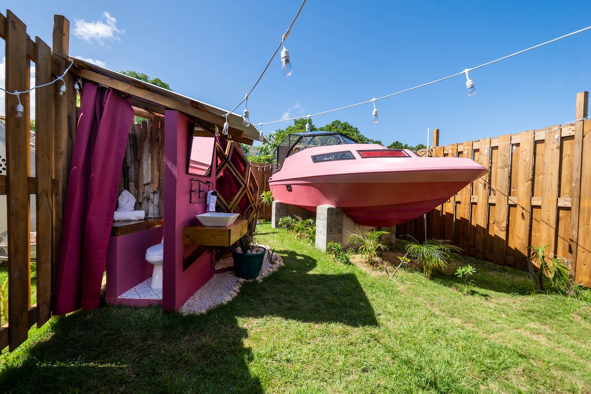 Exotic Pink Boat Home by the Beach!