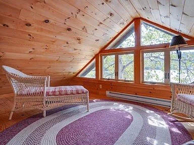 Tato příjemná srubová chata, která se rozprostírá podél 100 stop soukromého pobřeží jezera Eaton, v sobě snoubí rustikální teplo s moderním komfortem. Plně vybavená gurmánská kuchyň přechází do světlého, vzdušného obývacího prostoru s vysokými 6metrovými stropy. Nahoře se nachází hlavní apartmá v otevřeném podkroví s útulným posezením, které nabízí panoramatický výhled na jezero Vyjdi ven a užij si klidný život u jezera: ohniště orientované směrem k západu slunce, příjemná lesní stezka vedoucí k vodě, soukromé molo se 4 kajaky