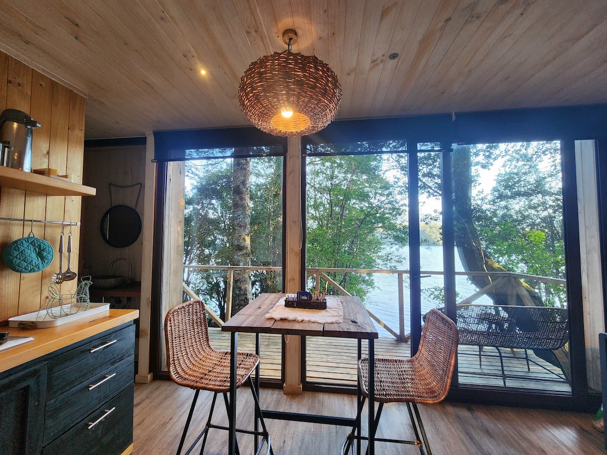 Descubre nuestras cómodas cabañas boutique, en el corazón del bosque Valdiviano, a solo 15 minutos de Valdivia. Relájate con familia o amigos en una tinaja caliente privada, ubicada en una terraza techada con vistas a los ríos Valdivia y Tornagaleones Explora nuestros senderos y accede al río Cutipay para disfrutar de kayak, SUP o vela. 🌿 Perfecto para quienes buscan privacidad, descanso y conexión con la naturaleza. ¡Tu escapada ideal te espera!