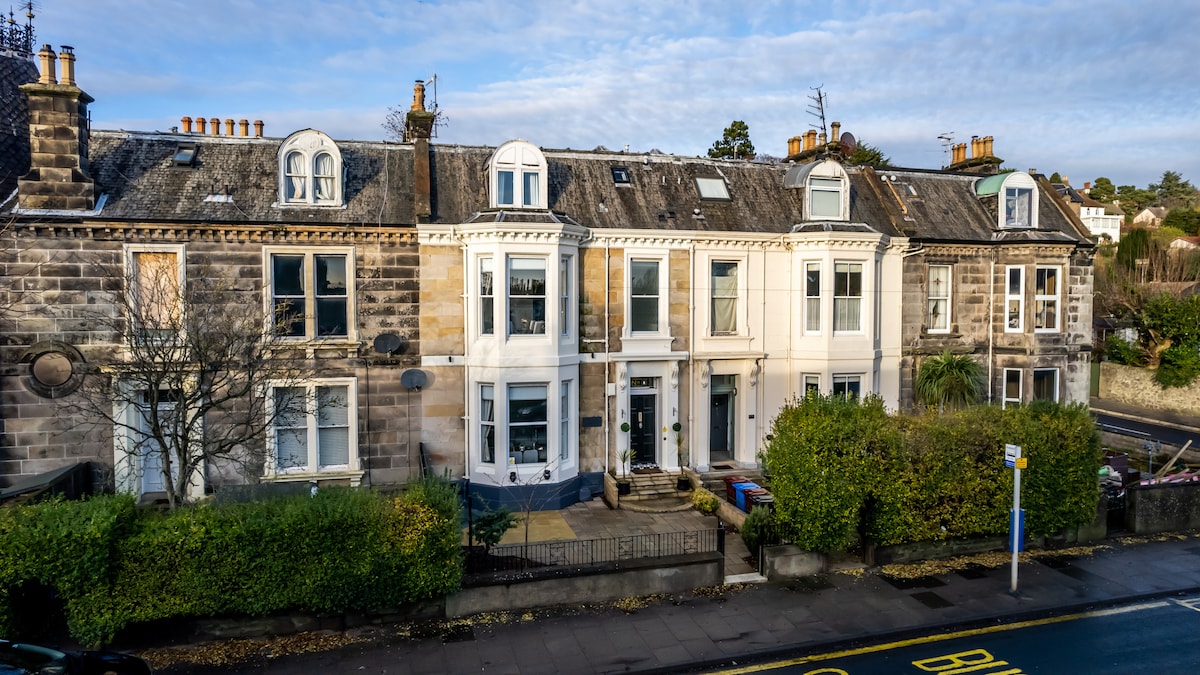 V tomto krásném, památkově chráněném městském domě je plný gruzínského šarmu a moderního designu. Vychutnej si výhled na střechu z tohoto oceněného butikového penzionu se soukromým apartmá v nejvyšším patře, než si vychutnej obývací pokoj v přízemí a snídani v úžasně moderní kuchyni. Pokud potřebuješ dva apartmány. Máme také další apartmá Airbnb v Crescent House, které je uvedeno jako „Top-Floor En-suite s výhledem v gruzínském uměleckém domě. Hluboká kapesní/ sportovní masáž na místě @ BackHug. Zvýhodněná denní vstupenka na Nuffield Health Omni Edinburgh je největší posilovna, plavání, pára a sauna - 10 minut chůze. V přízemí vedle kuchyně je hostům k dispozici sdílený obývací pokoj s televizí. S hosty komunikujeme tak často, jak si přejí. Vítáme je osobně a můžeme ti vysvětlit dům, oblast, doporučení a odpovědět na případné dotazy. Projdi se z okraje Nového Města na živou Broughton Street, kde najdeš bary, restaurace, divadla a malé nezávislé butiky. Prozkoumej trochu dál a objev všechna místa, která toto úžasné město nabízí. Většina památek je v docházkové vzdálenosti. Příjezd z vlakového nádraží Waverley a chůze k domu je relativně snadný. Na horním okraji ulice Broughton Street je tramvajová zastávka s přímým spojením na letiště. V okolí jsou k dispozici také místní autobusy. Platba za parkování přímo před objektem od pondělí do pátku (2,20 GBP za hodinu) V opačném případě zdarma Bezplatné denní parkování se nachází v blízkosti asi 0,5 míle daleko