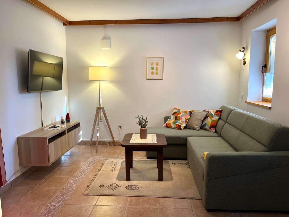 Krásný podkrovní byt v centru náměstí, který se může pochlubit bohatou historií… v minulosti tam byl hostinec, který hostil lidi z blízkého i vzdáleného... a nyní jsme jí znovu dali život. Snažíme se, aby se naši hosté cítili dobře, když si udělali čas pro sebe a užívali si s námi. Takže nyní jsme do nabídky přidali finskou saunu, což je skvělá relaxace pro tělo i ducha. Navštiv nás, nebudeš litovat