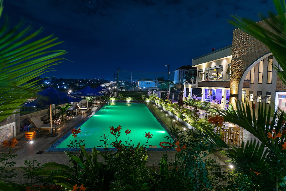 Úžasné nové luxusní vily s výhledem na jezero, s bezplatnou lehkou snídaní, soukromým nekonečným bazénem o rozměrech 12x6 m hned vedle, vybavené bistro barem, saunou, parní lázní, klimatizací, rychlou Wi-Fi, 70palcovou digitální TV s plochou obrazovkou, Netflixem, krásnými panoramatickými prosklenými balkony, 24hodinovou ostrahou, concierge a bezplatnou kyvadlovou dopravou na letiště, ideální pro zvláštní příležitosti, rodinné výlety, svatební cesty, pobyty v rezidenčním stylu nebo před a po safari, služební cesty, Entebbe, Kampala a Munyunyo.Perfektní obchodní třídy pro náročné