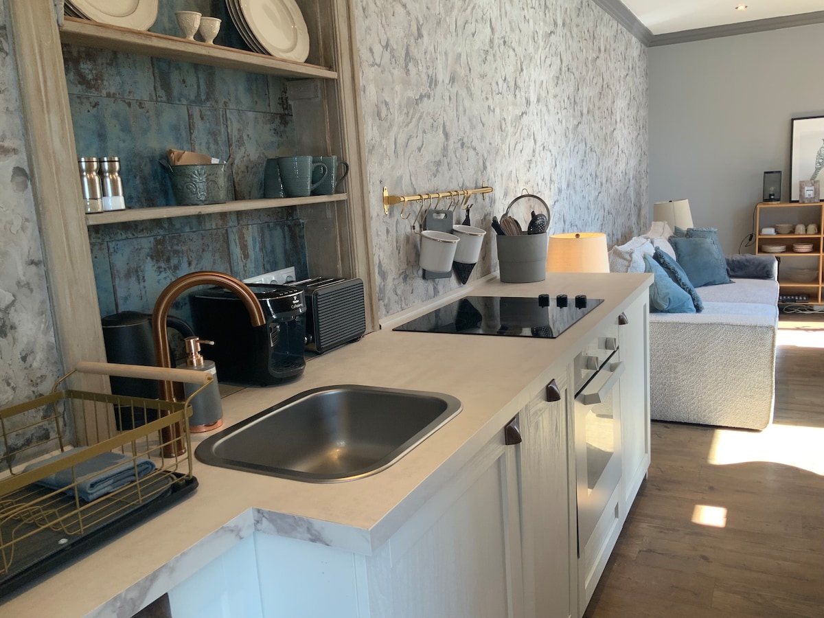 Centrální poloha a ideální výchozí bod pro aktivity mezi mořem. Malý byt je moderně zařízený a má obývací pokoj s otevřenou kuchyní, koupelnu a ložnici s 1,60 širokou manželskou postelí. Rozkládací pohovka v obývacím pokoji s prostorem na spaní o šířce 1,40 m ti také umožní spát odděleně. V ložnici je k dispozici chytrá televize. Krásná jižní terasa před apartmánem tě zve ke snídani nebo večer na drink.